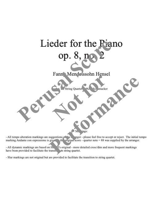 Story: I've always loved the music of Fanny Hensel - this piano piece in particular is hauntingly beautiful. It was written so plaintively and with such driven phrases –I thought it would translate well to strings.